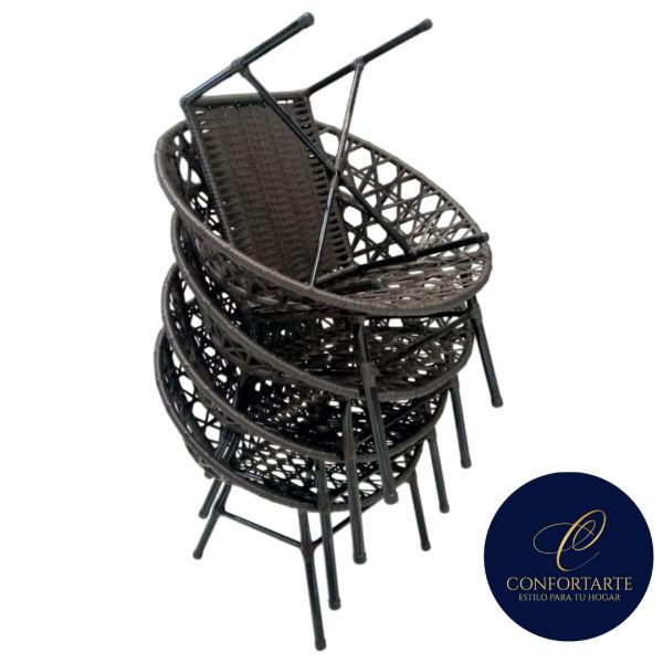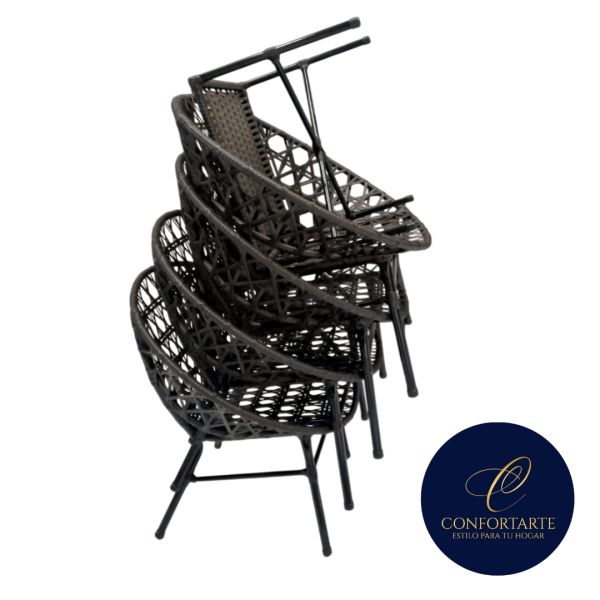 • Materiales Sólidos y Duraderos: Estructura metálica con cinta ratán tejida, ideal para el uso diario.