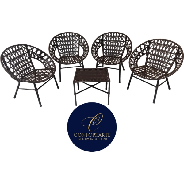 Crea ambientes confortables y funcionales con el Juego de Sillón Rodina ratán tabaco, una opción práctica y económica que combina diseño y durabilidad para interiores y exteriores.