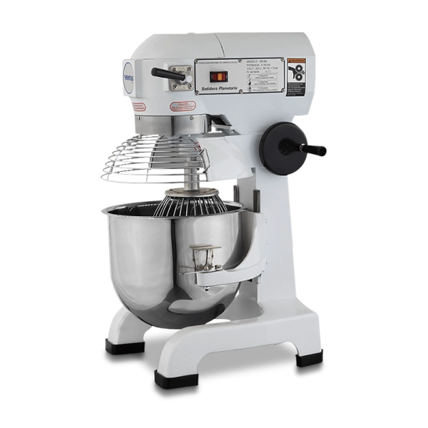 Batidora industrial, construida en fierro fundido de alta resistencia y duración. Motor de 1.5 HP Bowl de acero inoxidable reforzado. 3 velocidades de trabajo. Incluye 3 accesorios: Lira, globo y gancho. Rejilla de seguridad abatible. Manilla rotatoria para subir y bajar el bowl. Sistema de ventilación gracias al diseño de su carga.