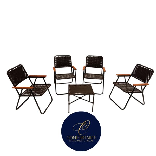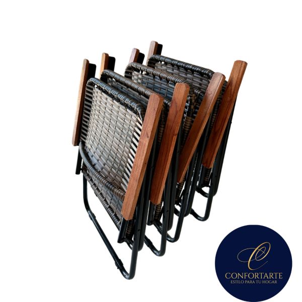JUEGO DE SILLON PLEGABLE RATAN TABACO 4 + MESITA CONFORTARTE