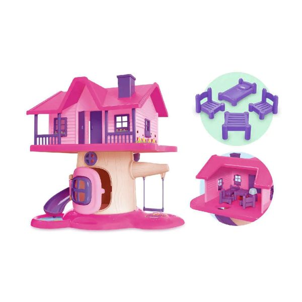 La Casa en el Árbol Bella Vila viene con varios accesorios como un columpio y un tobogán. Las puertitas se abren e incluye una mesita y sillas. Es una casita encantadora para las niñas a quienes les gusta jugar en el mundo de la fantasía.
