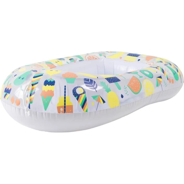 Las barcas para preescolares son un excelente modo de ayudarles a perder el miedo a las grandes superficies de agua, como las piscinas y el mar. Y, si además se añade una pequeña cantidad de agua y algunos juguetes de playa en su interior, podrán experimentar y jugar con este medio, explorando sus distintas posibilidades. Esta tiene el tamaño perfecto para preescolares a partir de 12 meses. Edad: A partir de los 12 meses Características: Barca hinchable para preescolares de +12 meses. Diseño superior impreso sobre fondo transparente y fondo de color. Resistente al cloro y a la acción del agua salada. Válvula de seguridad: fácil de hinchar. Con doble cámara para una mayor seguridad. Juguete recreativo, usar en presencia de un adulto. Lavar ˙nicamente con agua y jabón suave. Dimensiones: 100cm (largo) x 60cm (ancho)