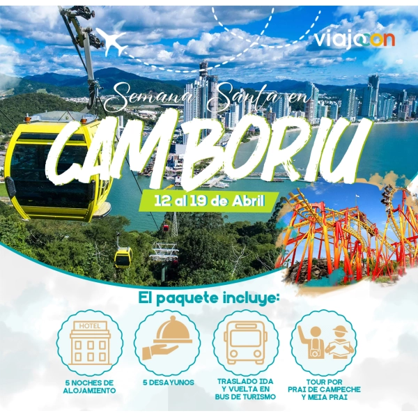 Camboriú - Semana Santa 2025 12 al 19 de abril Vive una Semana Santa inolvidable en las paradisíacas playas de Camboriú Disfruta de un destino vibrante, con paisajes espectaculares, playas de ensueño y una gran oferta de actividades para relajarte y divertirte.