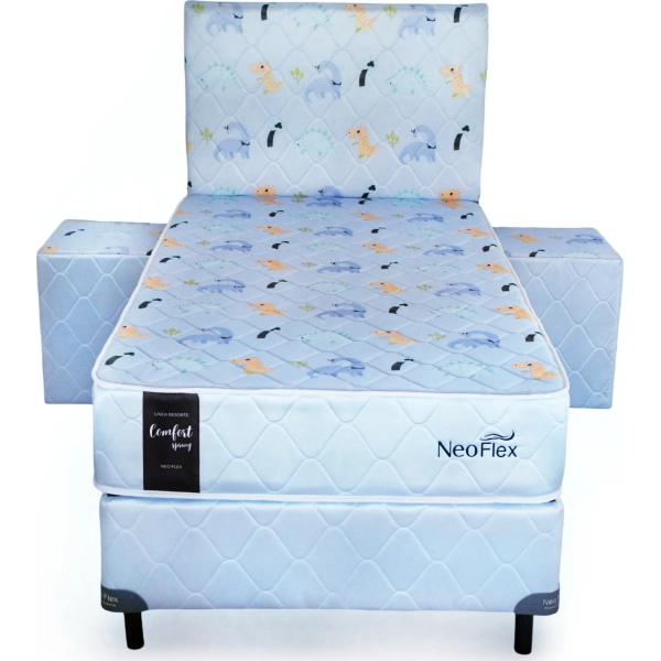 CAMA NEOFLEX 100X190X25 INFANTIL + CABECERA + 2 PUFF CELESTE