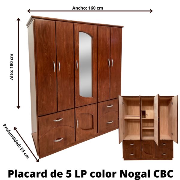 ROPERO PLACARD CBC 5 CUERPOS C/ ESPEJO COLOR NOGAL