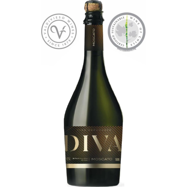 Vino Espumante Chileno Diva Moscato – 750 ml Aromático, dulce y encantador. Un espumante que seduce desde la primera copa. El Diva Moscato es un espumante chileno de perfil dulce y expresivo, elaborado con uvas Moscatel cuidadosamente seleccionadas. De carácter frutado, con burbujas suaves y un final refrescante, es ideal para quienes buscan un vino espumante delicado, fácil de disfrutar y con gran potencial para acompañar celebraciones, postres o momentos especiales.