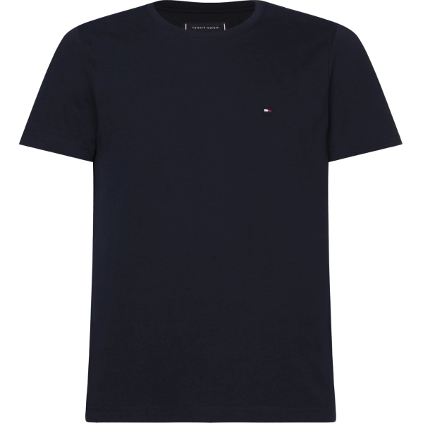 Una camiseta clásica confeccionada en algodón puro, este estilo tiene cuello redondo, mangas cortas y el icónico logotipo de la bandera de Tommy Hilfiger bordado en el pecho.