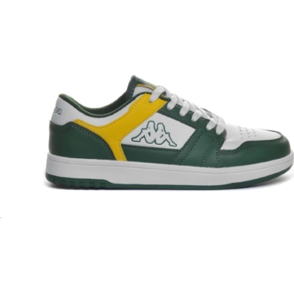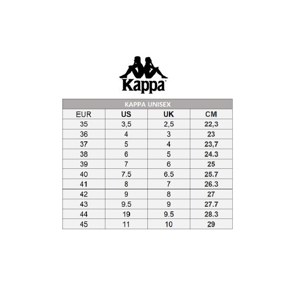 Colección Sport Logo. Calzado unisex de corte bajo para niños. Parte superior de material sintético y suela de TPR. Plantilla de espuma de doble densidad. Logotipo Omini en el lateral y letras Kappa en la parte trasera, etiqueta Omini Kappa Tongue.