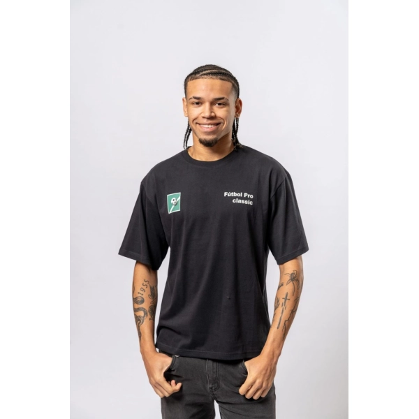 Remera estampada para hombre, 100 % algodon peinado, Color negro, corte boxy de silueta recta y caída amplia. Su diseño Futbol aporta un aire moderno y relajado, ideal para el verano. Garantia 3 meses