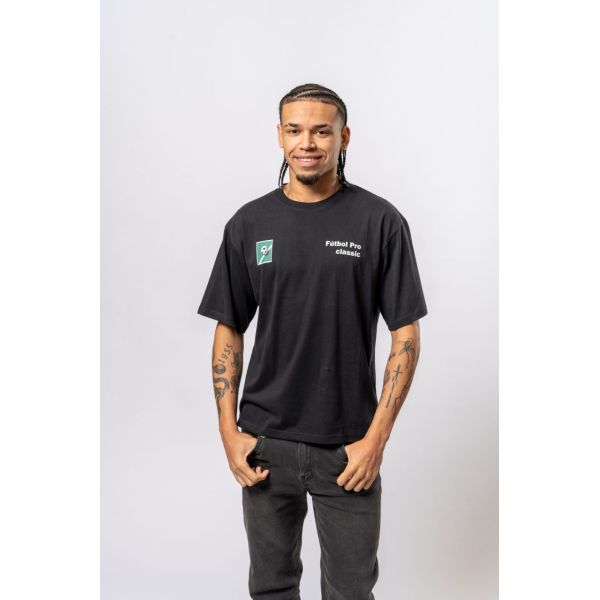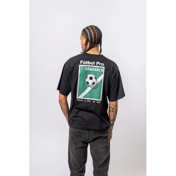Remera estampada para hombre, 100 % algodon peinado, Color negro, corte boxy de silueta recta y caída amplia. Su diseño Futbol aporta un aire moderno y relajado, ideal para el verano. Garantia de calidad Vernier