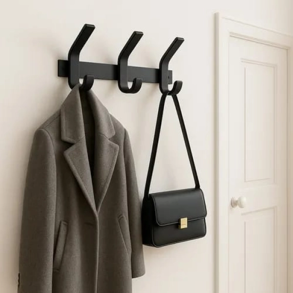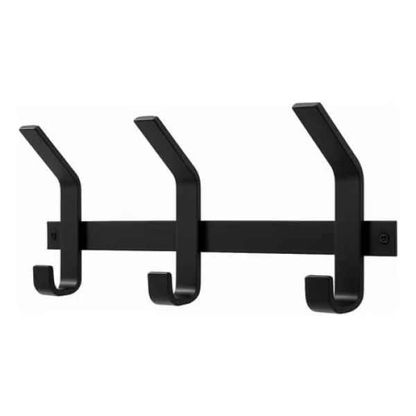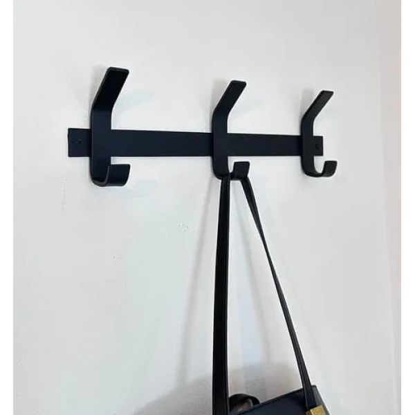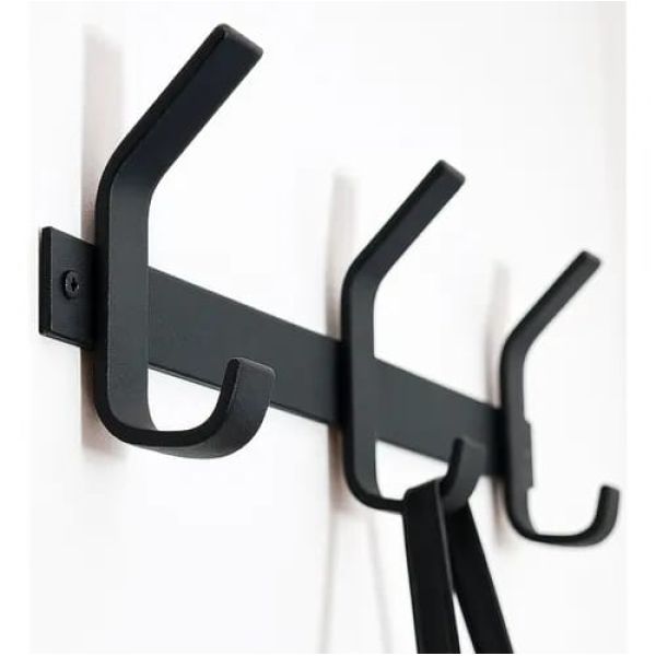 Este perchero de 3 ganchos, en color negro es la opcion ideal para quienes buscan resistencia y durabilidad. Fabricado en hierro macizo, soporta hasta 50 kilos de peso, lo que lo convierte en un pieza super fuerte y confiable para colgar abrigos, bolsos y otros objetos pesados.