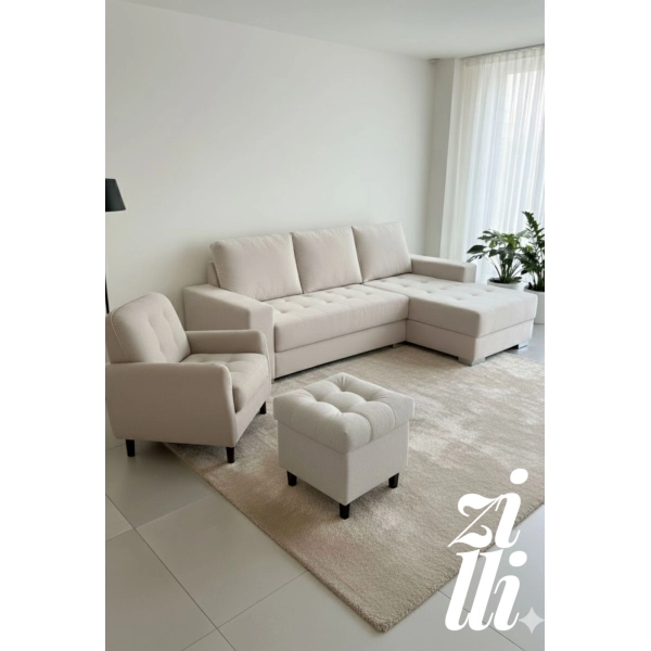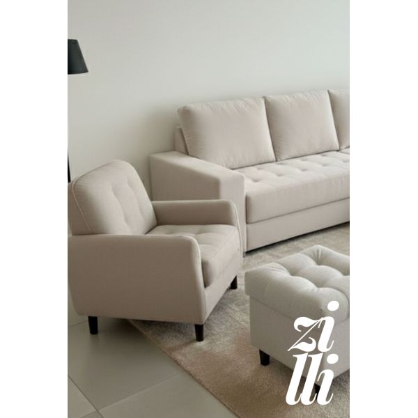 JUEGO DE LIVING ZILLI 2.40 + POLTRONA + PUFF - BEIGE ONX41