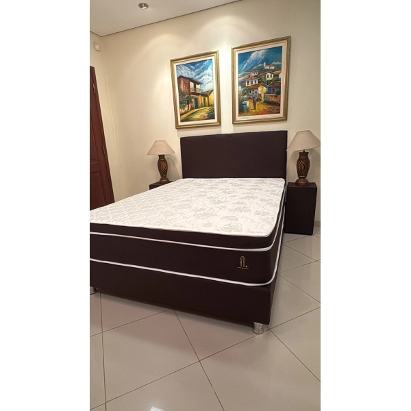 SOMMIER ALTEZZA DILETTO 1.60 X 2.00 COLOR MARRON CHOCOLATE Tela pana Base de madera eucalipto reforestada con pata de madera forrada en aluminio Colchón Densidad 25 Soporta 100 kilos por lado Garantía 1 año
