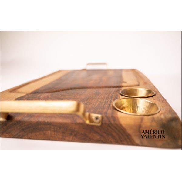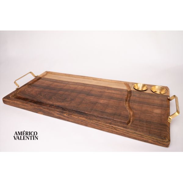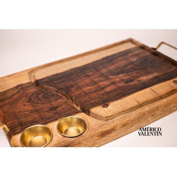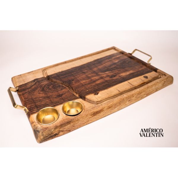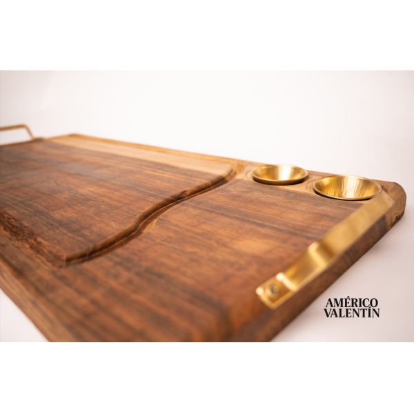 TABLA PARA ASADO AMÉRICO VALENTÍN - 2 CONDIMENTEROS - DETALLES EN DORADO