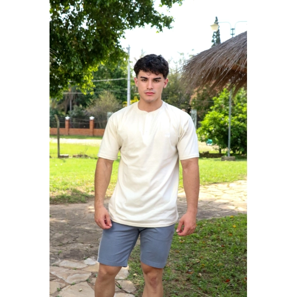 REMERA JACK SIDE CUELLO REDONDO CON BOTONES MARFIL TALLE M