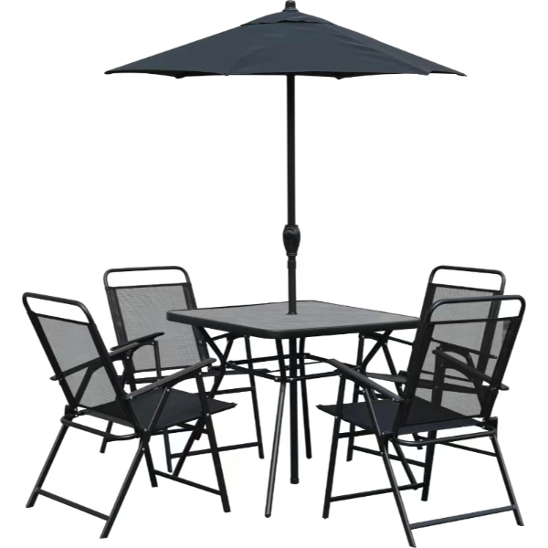 JUEGO DE JARDIN NEGRO GOLEADER 6 PIEZAS MESA CUADRADA CON SOMBRILLA GL-72833