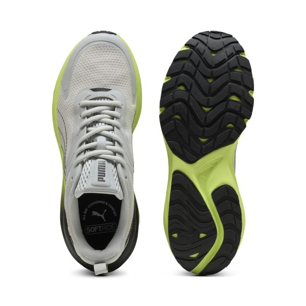 HISTORIA DEL PRODUCTO El calzado definitivo para el consumidor moderno que siempre está en movimiento, pero que aun así quiere añadir un toque de estilo a su estilo de vida. Este calzado está diseñado teniendo en cuenta tanto la comodidad como el estilo, lo que lo convierte en la opción perfecta para cualquier persona activa que quiera estar de pie todo el día. Con su innovadora tecnología de espuma Softride, este calzado proporciona una comodidad y un soporte incomparables, lo que ayuda a reducir la fatiga y a mantener los pies frescos y con energía, incluso después de un largo día de caminata o carrera. CARACTERÍSTICAS Y BENEFICIOS La parte superior de los zapatos está hecha con al menos un 30% de materiales reciclados. DETALLES Zapatos bajos Entresuela Softride Suela de goma Cierre de encaje Logotipo de PUMA Cat en la lengüeta y el talón