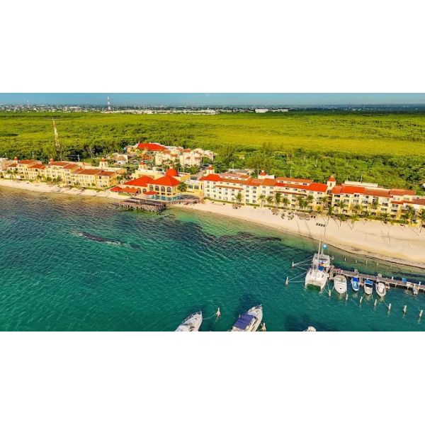 Está situado en el extremo norte de la ciudad, cerca de Puerto Juárez / Punta Sam, lo que le da acceso propio a playa privada