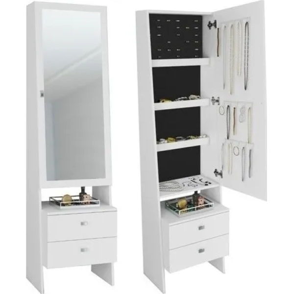 TOCADOR ALTEZZA BLANCO C/ ESPEJO, CAJ Y COLGADORES DE METAL PE2008. MEDIDAS 1,45X0,78X0,36. ESPACIO INTERNO PARA GUARDADO DE JOYAS, ANILLOS, CADENAS Y ACCESORIOS. CAJONES INFERIOES CON AMPLIOS ESPACIOS.