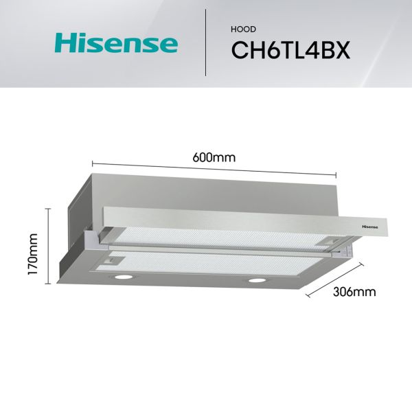 | Campana extractora Hisense de 60 Cm, extencible, de acero inoxidable, filtro de carbono activado, 2 años de garantia en Paraguay |