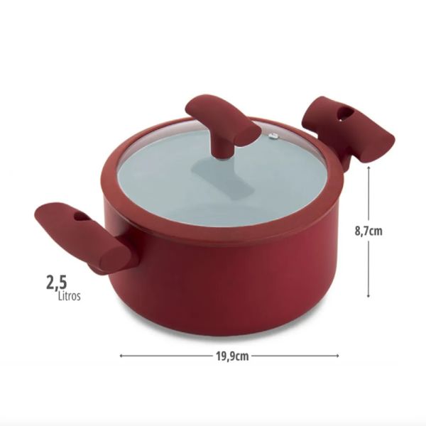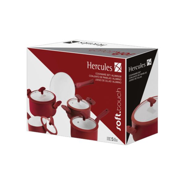 CONJUNTO DE CACEROLAS ROJO SOFT TOUCH ANTIADHERENTES HERCULES 5 PIEZAS PA300-5PVM