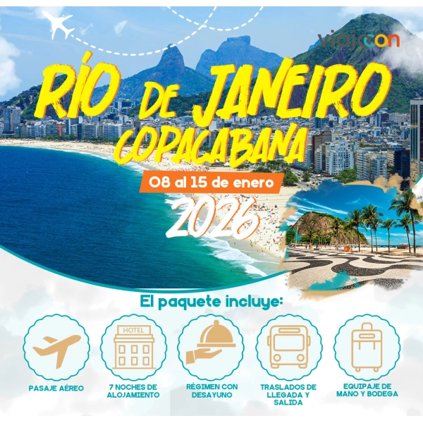 PAQUETE DE VIAJE RIO DE JANERIO COPACABANA 08 AL 15 DE ENERO 2026