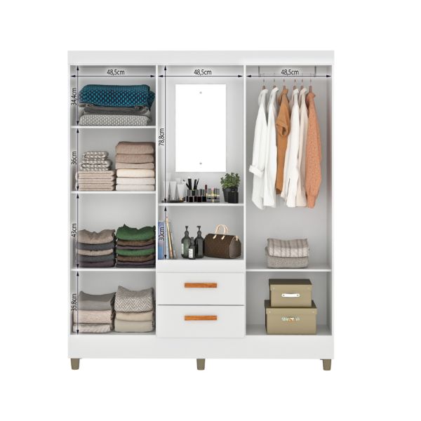 El Ropero Capela New Mobi combina amplitud, diseño y funcionalidad en un acabado blanco elegante y versátil que aporta luminosidad al dormitorio. Su estilo moderno se adapta fácilmente a diferentes ambientes, ofreciendo un espacio organizado y armonioso.